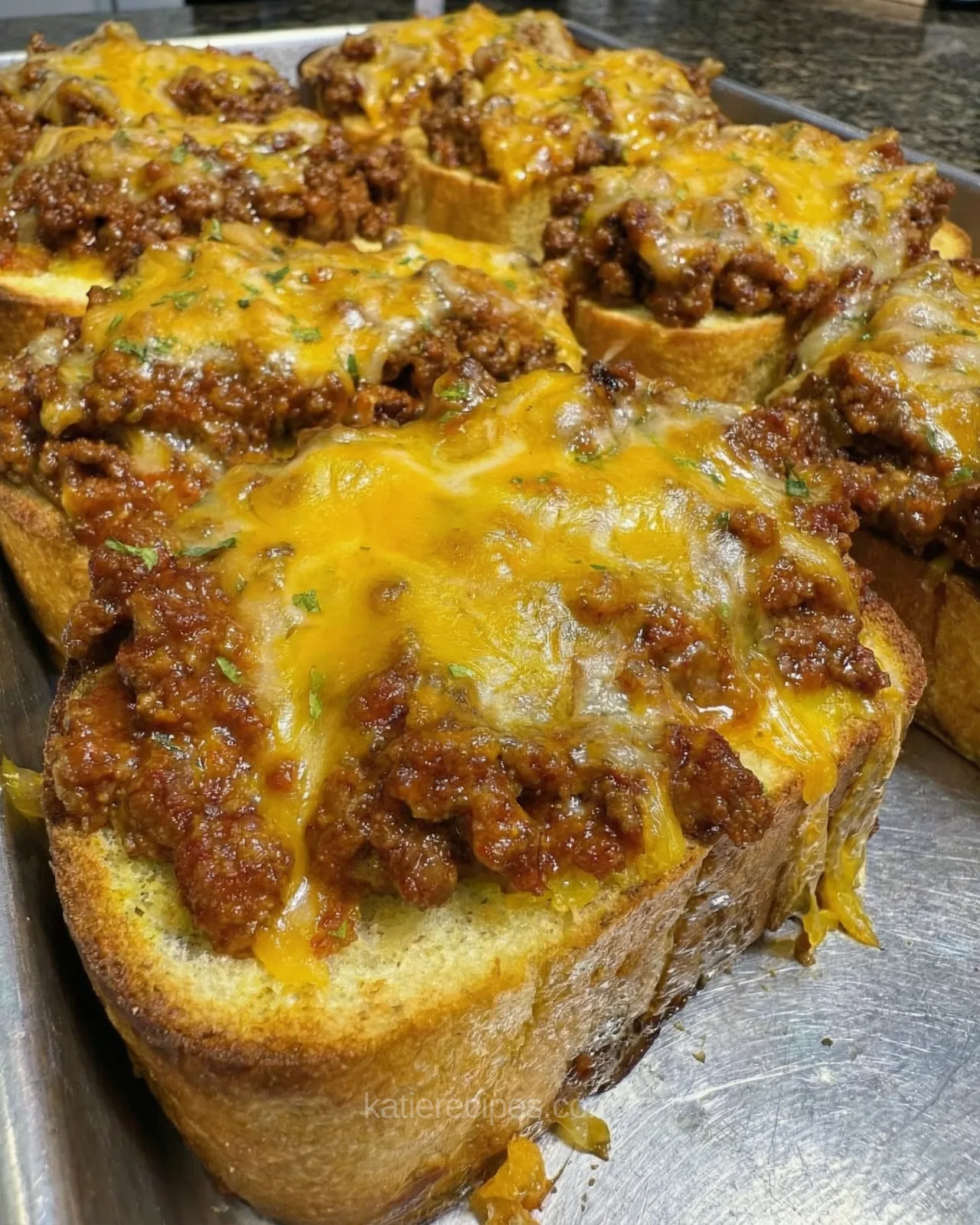 It takes the familiar sloppy joe filling most people grew up with and puts it on top of crispy garlic toast, then finishes everything with melted cheddar cheese. That combination alone tells you exactly what kind of recipe this is. Comfort food. Simple. A little indulgent. And honestly hard to stop eating once you start.