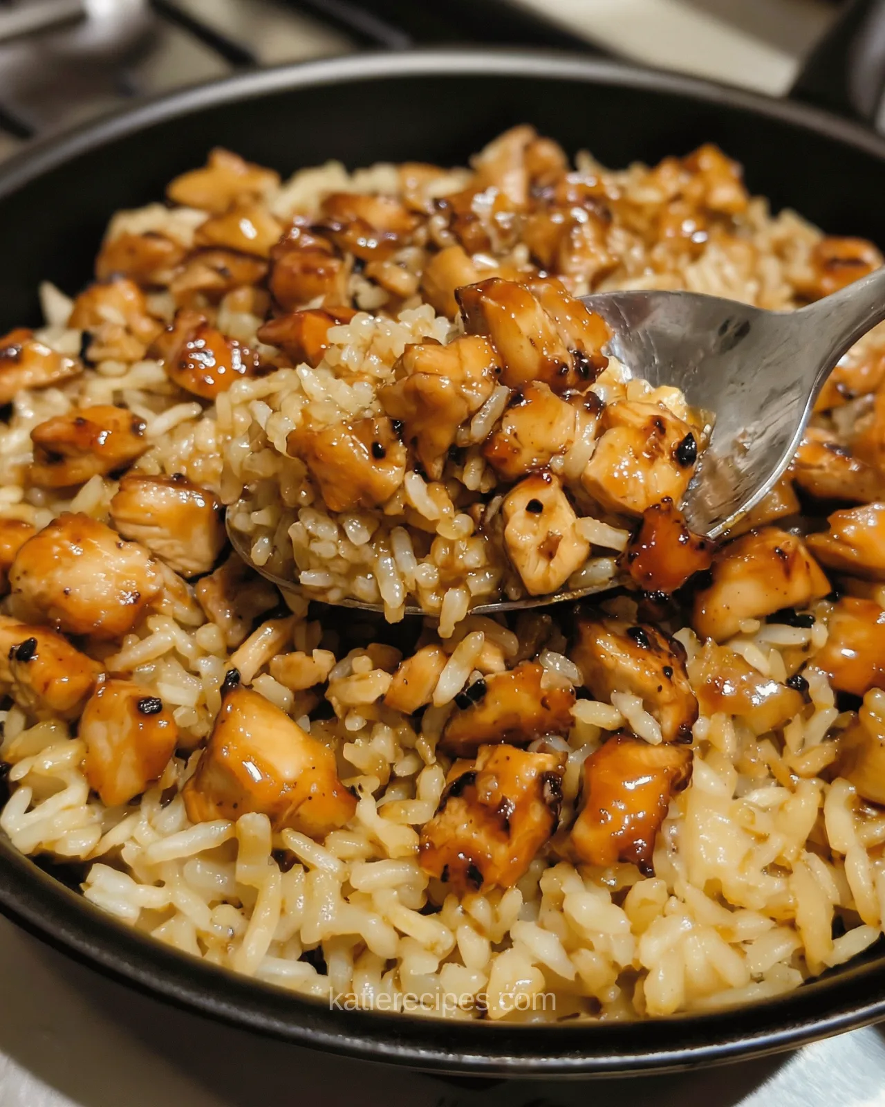 This honey BBQ chicken rice works because everything cooks together. The rice absorbs the chicken broth and the sweet, smoky BBQ sauce. Nothing is bland. Nothing is separate.